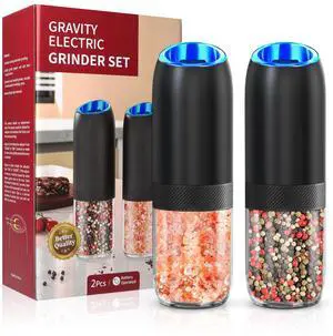 Gravity Electric Salt and Pepper Grinder,Battery Salt and Pepper Grinder Set,One-Hand Ceramic Larger Chamber Automatic Spice Mill,Adjustable Coarseness with LED Light for Kitchen New Home Gifts