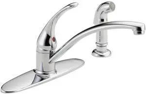 Delta Foundations Chrome Kitchen Faucet with Side Sprayer, Contemporary 4 Hole Kitchen Sink Faucet, Single Handle, Chrome B4410LF