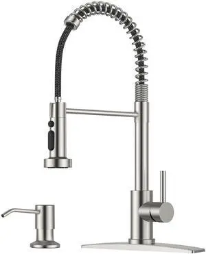 FORIOUS Kitchen Faucet with Soap Dispenser, Stainless Steel Kitchen Sink Faucet with Pull Down Sprayer Burhsed Nickel Single Handle Modern Spring Commercial for Laundry Room RV Camp Bar Farmhouse