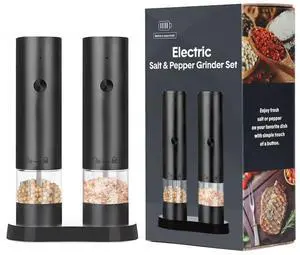 Electric Salt and Pepper Grinder Set - Rechargeable Automatic Salt and Pepper Shakers, Kitchen Appliances with External Adjustable Coarseness, Larger Hopper for Cooking, Home Gifts(2 Pack,Black/Black)