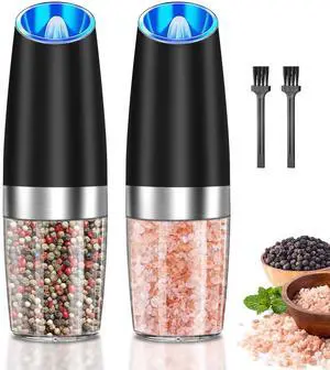 Gravity Electric Salt And Pepper Grinder Set, Automatic Salt And Pepper Grinder Set, Battery Powered (6 AAA Batteries Each), Adjustable Roughness, LED Light, 2 Pack, (Black)