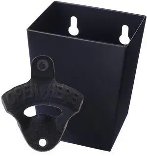 Satin Black Cast Iron Bottle Opener Wall Mounted with Bottle Cap Catcher Narrow