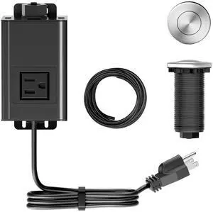 Garbage Disposal Air Switch Kit in Spot-Free Stainless Steel with Push Button, AC Adapter, Power Cord, and Air Tube Included, KWDA-200SFS