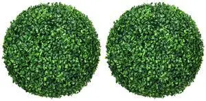 Set of 2 15.75 Inch Artificial Ball Boxwood Topiary Trees Balls, Indoor Outdoor Fake Plants for Home, Office & Living Room Decor