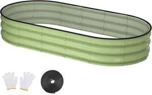 Raised Garden Bed, 6x3x1ft Galvanized Outdoor Planter Beds with Safety Edging and Gloves, Oval Metal Planter Box for Gardening Vegetables Flowers Herb
