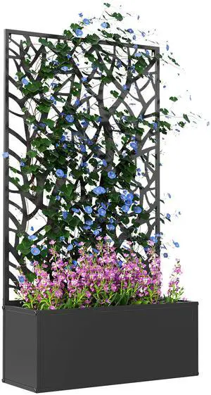 Metal Raised Garden Bed with Trellis, Freestanding or Wall Mounted Raised Flower Bed with Privacy Panel for Garden, Patio, Balcony