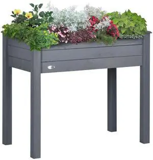 Raised Garden Bed with Legs, 34" x 18" x 30", Elevated Wooden Planter Box, Self-Draining with Bed Liner for Vegetables, Herbs, and Flowers Backyard, Patio, Balcony Use, Dark Gray