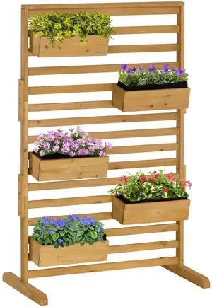 Wooden Plant Trellis Stand with 5 Hanging Planter Boxes, Freestanding Outdoor Plant Stand for Patio, Garden, Balcony, Porch