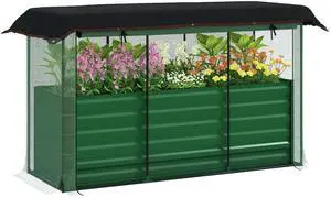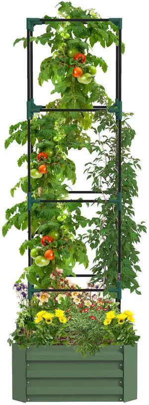 Galvanized Raised Garden Bed, 24" x 24" x 11.75" Outdoor Planter Box with Trellis Tomato Cage and Open Bottom for Climbing Vines, Vegetables, Flowers in Backyard, Garden, Patio, Green