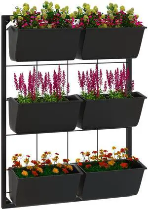 3-Tier Wall Planter with 6 Pots for Indoor and Outdoor Use, Hanging Plant Holder, Self Draining Wall Mounted Planter for Vegetables, Flowers, Herbs, Black