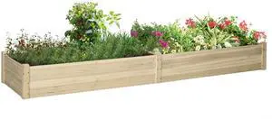 8x2ft Wooden Raised Garden Bed Kit, Elevated Planter with 2 Boxes, Self Draining Bottom and Liner, Patio to Grow Vegetables, Herbs, and Flowers, Natural