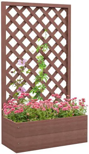 Raised Garden Bed with Trellis Lattice, Wood Planter Box with Self Draining Gap, Freestanding Trellis Planter for Climbing Plants, Vines, Flowers, 29.5" x 13.25" x 53.25", Light Brown