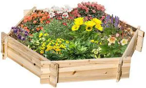 Wooden Raised Garden Bed, Hexagon Screwless Planters for Outdoor Plants, Vegetables, Flowers, Herbs, 39" x 36" x 6", Natural Wood