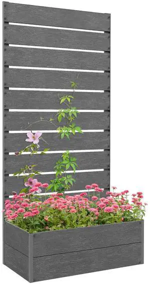 Raised Garden Bed with Trellis for Climbing Plants, Planter Box with Drainage Gap, Freestanding Trellis Planter for Outdoor, Patio, Deck, 28.25" x 15" x 59", Gray