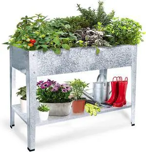Galvanized Raised Garden Bed for Vegetables Elevated Planter Box with Legs Outdoor Patio Apartment Herb Container Metal