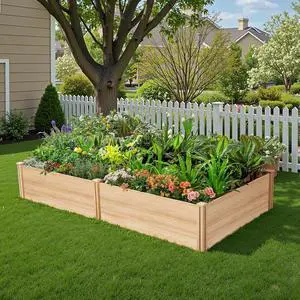 SPECRAFT 8x4 Ft Wood Raised Garden Bed, Durable 15 Inch Depth Planter Box for Vegetables, Herbs, and Flowers, Ideal for Outdoor Gardening with Open Base
