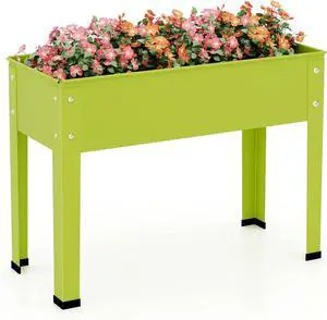 Giantex Raised Garden Bed, Metal Planter Box with Legs, Drain Hole, Outdoor Indoor Elevated Garden Box for Vegetable Flower Herb Fruit, Standing Raised Beds for Backyard Porch Balcony Green