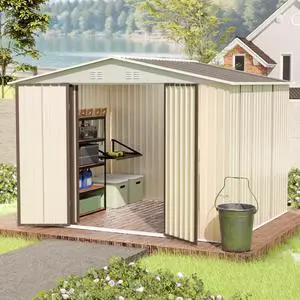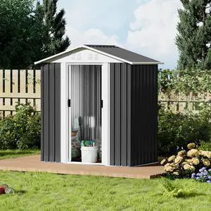 6'x4' Outdoor Metal Storage Shed for Garden Tools Lockable Door With Floor Frame