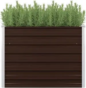 vidaXL Raised Garden Bed Galvanized Steel Brown Planter Flower Box Outdoor