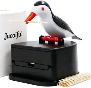 Little bird toothpick dispenser With toothpick, creative push-type toothpick bird dispenser, toothpick holder. (black)