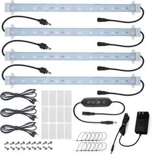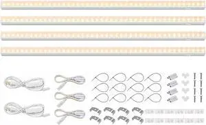 Grow Light Strip Kit 36W with Timer, 4 pcs 16 Inches LED Grow Light Strips with Extension Cables, Mounting Accessories for Greenhouse, Grow Shelf. Perfect for Indoor Growing-(4-Strip-Kit)
