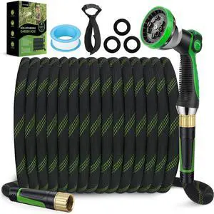 HORTICORA Non-Expanding Garden Hose 100 ft, Lightweight Hose & Flexible Water Hose With 10-Pattern Spray Nozzle, Kink-Free Design, Durable Leakproof Yard Outdoor Hose, Portable Storage Strap, 100 Feet
