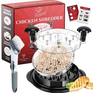 Large Chicken Shredder Tool Twist 10 Pro Meat Shredder, Visible Lid, Extra Plate and dispenser Brush, Handheld chicken shredder desmenuzador de pollo, BPA-free chicken shredder device