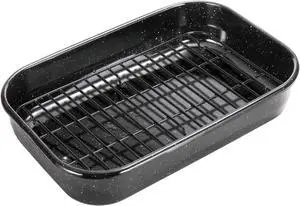 JY COOKMENT Granite Roaster Pan, Small 13 Enameled Roasting Pan with Domed Lid. Oval Turkey Roaster Pot, Broiler Pan Great for Small Chicken, Lamb. Dishwasher Safe Cookware Fit for 7Lb Bird