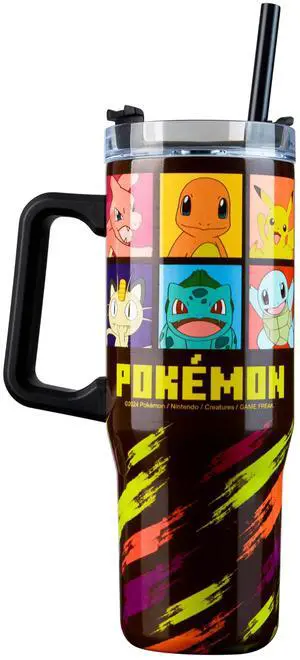 Insulated Tumbler Travel Mug 33oz Stainless Steel Pikachu Anime Water Bottle with Handle and Straw Thermal Double Wall Vacuum Insulation Drinks for Hot Cold Ice Cupholder Compatible