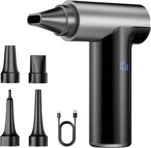 Compressed Air Duster, Cordless Electric Air Duster with 6 Connectors for Cleaning Keyboards Pcs Cameras Air Beds and Boats