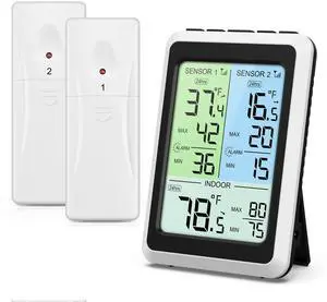 Ankilo Upgraded Refrigerator Thermometer with Freezer Alarm, Digital Wireless Fridge Thermometer with 2 Sensors, 4.5" LCD Display, /, Backlight Min/Max Record for Kitchen Home Restaurant