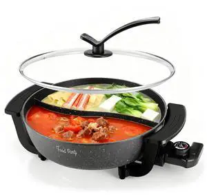 Electric Hot Pot 6L with Divider Hotpot Pot Electric Shabu Shabu Pot 110V 1200W PFOA FREE Non-Stick Chinese Hot Pot 5-Level Temperature Control