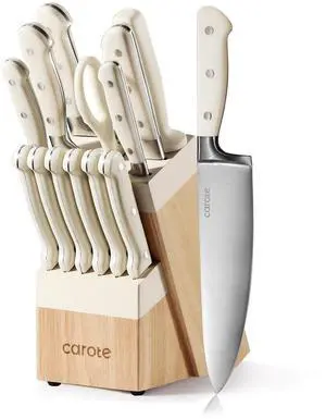 14 Pieces Knife Set with Block, Forged, High Carbon Stainless Steel Sharp Blade Block Knife Set, Dishwasher Safe Cutlery, CreamLimited time offer, ends 03/29