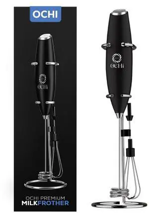 OCHI Powerful Milk Frother & Egg Beater - Powerful Electric Handheld Frother & Whisk for Coffee, Lattes, Cappuccino, Hot Chocolate & Coffee Creamer - Ultra Fast Foam Maker & Drink Mixer (Black)