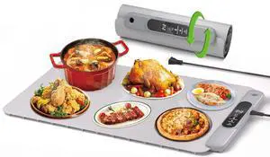 Foldable Food Warming Mat with Full Surface Heating in 10sec Portable Heating Pad with 6 Level Adjustable Temperature & 6H Timer for Buffet, Party, Gathering, Daily Use | 24"x16"