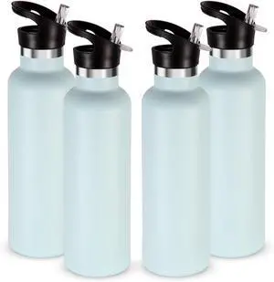 Neihepal 24oz Insulated Water Bottles Bulk 4 Pack,Stainless Steel Double Wall Sport Bottle with Straw Lid,Metal Reusable Thermoses Cup with Hand Cap for School,Cyclists,Hikers,Gift (Fog,Set of 4)