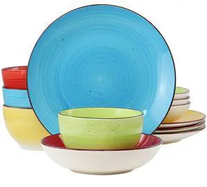 Elama Mason 12 Piece Double Bowl Stoneware Dinnerware Set in Assorted Colors