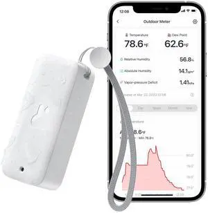 IP65 Indoor Outdoor Hygrometer Thermometer Wireless, 394ft Bluetooth Range, Refrigerator Thermometer, Dewpoint/VPD/Absolute Humidity Sensor, Free Data Storage Export, 2 Years Battery Life