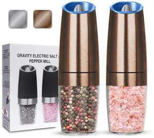 Gravity Electric Salt and Pepper Grinder set of 2, Automatic Salt And Pepper Grinder Set, Adjustable Roughness, Battery Powered, LED Light, 2 Pack, (Copper)
