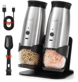 Gravity Electric Salt and Pepper Grinder Set with Safe Base,2 Pack Automatic Mill Adjustable Coarseness with LED light,650mAh Rechargeable Batteries with Fast USB-C Charging, Gifts for Women