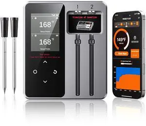 Bluetooth Wireless Meat Thermometer with 2 Probes, Standalone Digital Base, WiFi Unlimited Range, ±1.8 Accuracy, IP68 Waterproof Real Time Monitoring, for Kitchen, BBQ, Grill, Oven, SmokerLimited time offer, ends 02/01