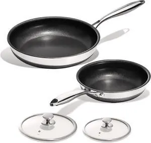 KITEXPERT Non Stick Frying Pans Set - 2 Piece (10, 12") Titanium Ceramic Pan with Lids, Nonstick Skillet Stainless Steel, PFAS PFOA & PTFE Free, Dishwasher & Oven Safe, All Cooktops Compatible