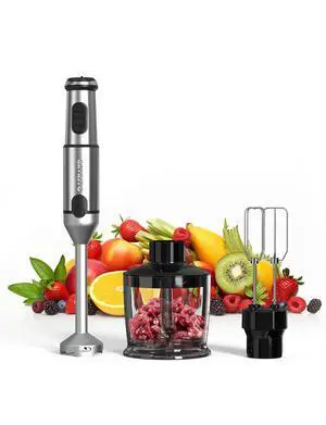 Immersion Blender Handheld Hand Blender,20 Speeds and Turbo Mode Hand Mixer, 3-in-1 Heavy Duty Copper Motor Stainless Steel