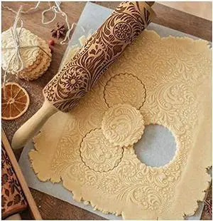Embossed Rolling Pins for Christmas,3D Paisley Pattern Flower Snowflake rattan Wooden Roll Pin Laser Engraved Rolling Pin DIY Tool,Rolling Pin for Kids and Adults to Make Cookie Dough (355)