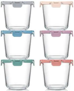 [UPGRADED LID] 6 Sets 3 Cup/24oz Borosilicate Glass Meal Prep Containers with Lids, Food Storage Bowl Jars for Soup Leftover Meal Lunch Oats Fruit Deli Salads - Microwave, Oven, Freezer Safe -BPA Free