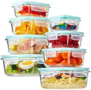8 Pack Glass Food Storage Containers with Lids, 5oz to 35oz Meal Prep Containers, Airtight Bento Boxes with Leak Proof Locking for Microwave, Oven, Freezer and Dishwasher, BPA Free