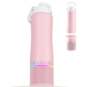 Water Bottle with Portable Bluetooth Speaker - Modular Insulated Water Bottles w/Handle, BT5.3, TWS Pairing Speaker and Stainless Steel Cups for Camping Sports Beach (Pink)