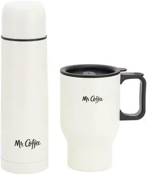 Mr. Coffee Javelin 2 Piece Thermal Bottle and Travel Mug Set in White