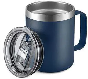 16 oz Insulated Coffee Mug with Handle and Lid, Double Wall Stainless Steel Vacuum Thermal Coffee Mug, Travel Coffee Cup Thermal Cup for Home and Office, Storm Black