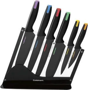 - Features: Sharpener and Block, 8" Chef knife, 8" Slicing knife, 8" Serrated bread knife, 7" Santoku knife, 5" Utility knife, 3.5" Paring knife, 1 Pcs kitchen shears, 6 Pcs 4.5" serrated steak knife